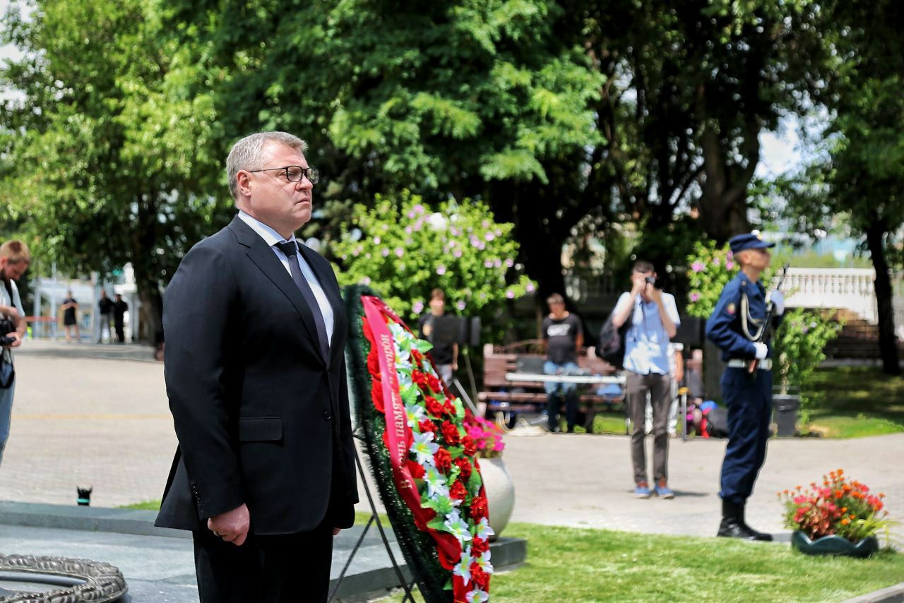 Сегодня в Астрахани состоялись памятные мероприятия, посвящённые 84-ой годовщине начала Великой Отечественной войны, в которых приняли участие Губернатор Астраханской области Игорь Бабушкин, депутаты области и города, ветераны, кадеты, представители общественных организаций.