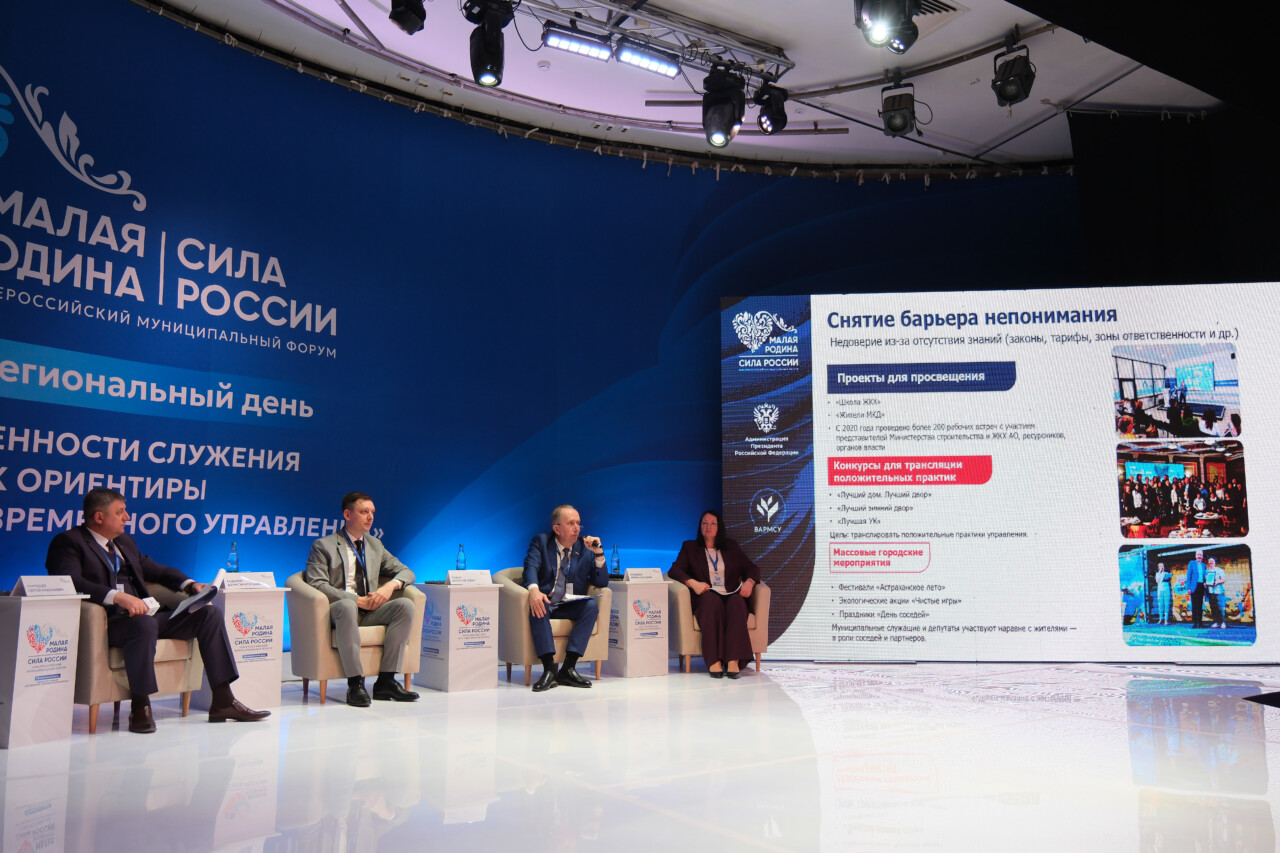 В рамках восьмого Регионального дня III Всероссийского муниципального форума «МАЛАЯ РОДИНА – СИЛА РОССИИ», проходящего в Астрахани, председатель Городской Думы Игорь Седов выступил одним из спикеров площадки «Диалоги о будущем. Управляемый имидж и популяризация муниципальной службы: команда и технологии».