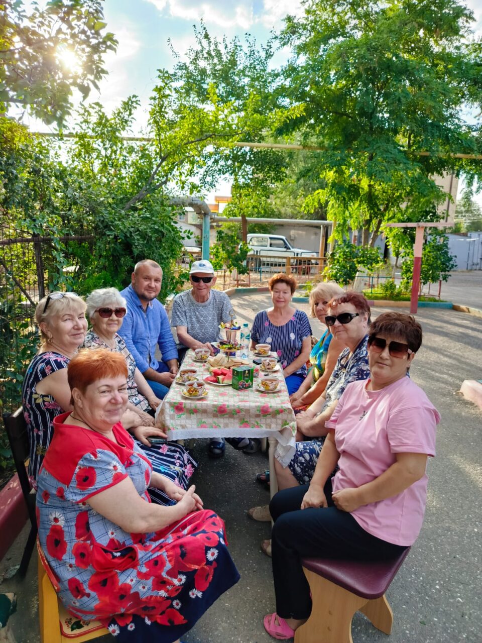 В этот раз разговор прошёл в теплой атмосфере — за чашкой чая во дворе.