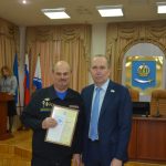 Председатель Городской Думы Игорь Седов принял участие в награждении сотрудников муниципального аварийно-спасательного центра и пожарных МЧС России по Астраханской области, которые работали на месте частичного обрушения многоэтажного жилого дома на площади Вокзальной.